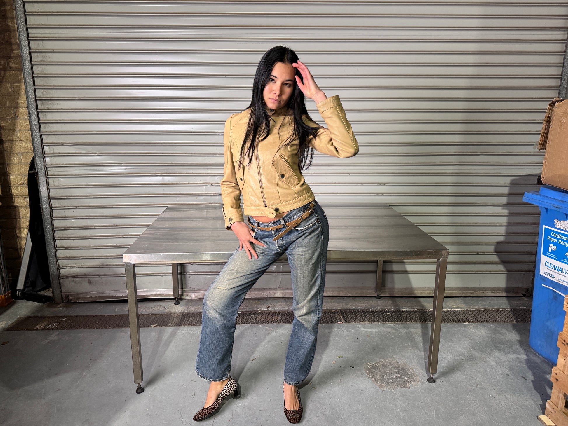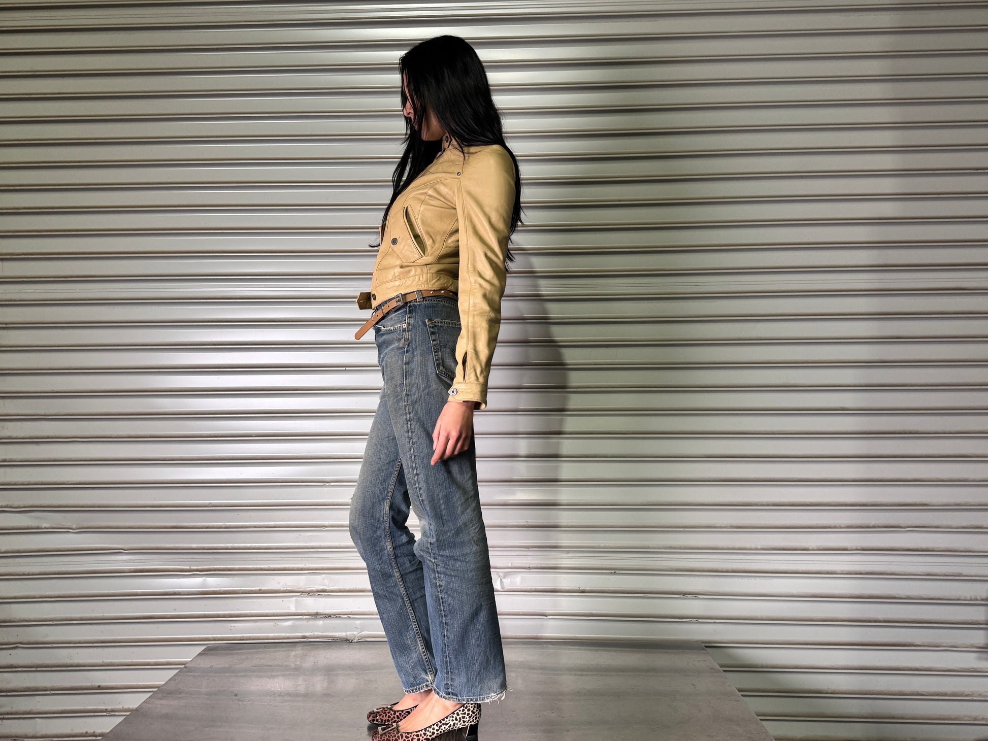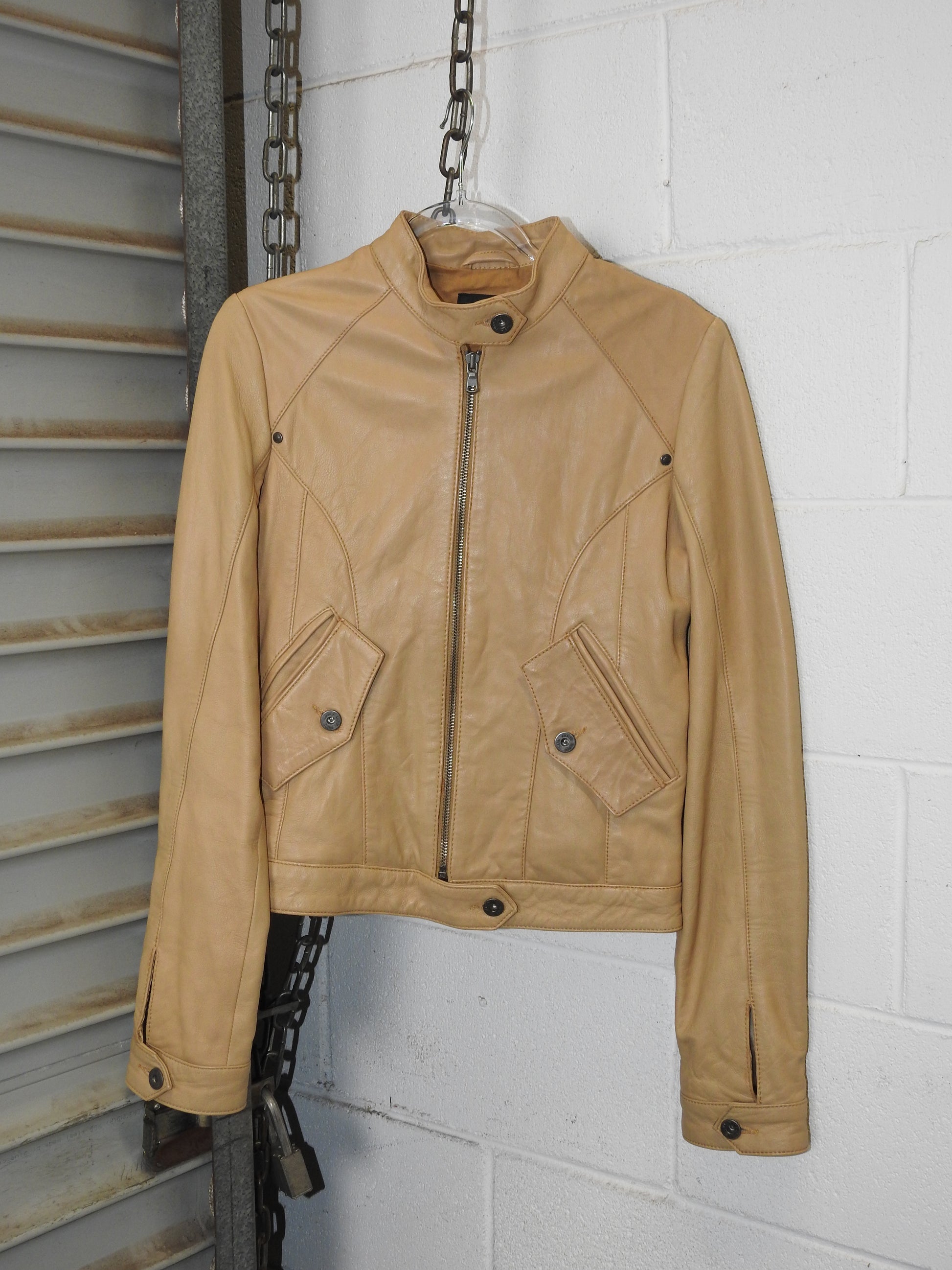 > CALVIN KLEIN BEIGE LEATHER MOTOR JACKET